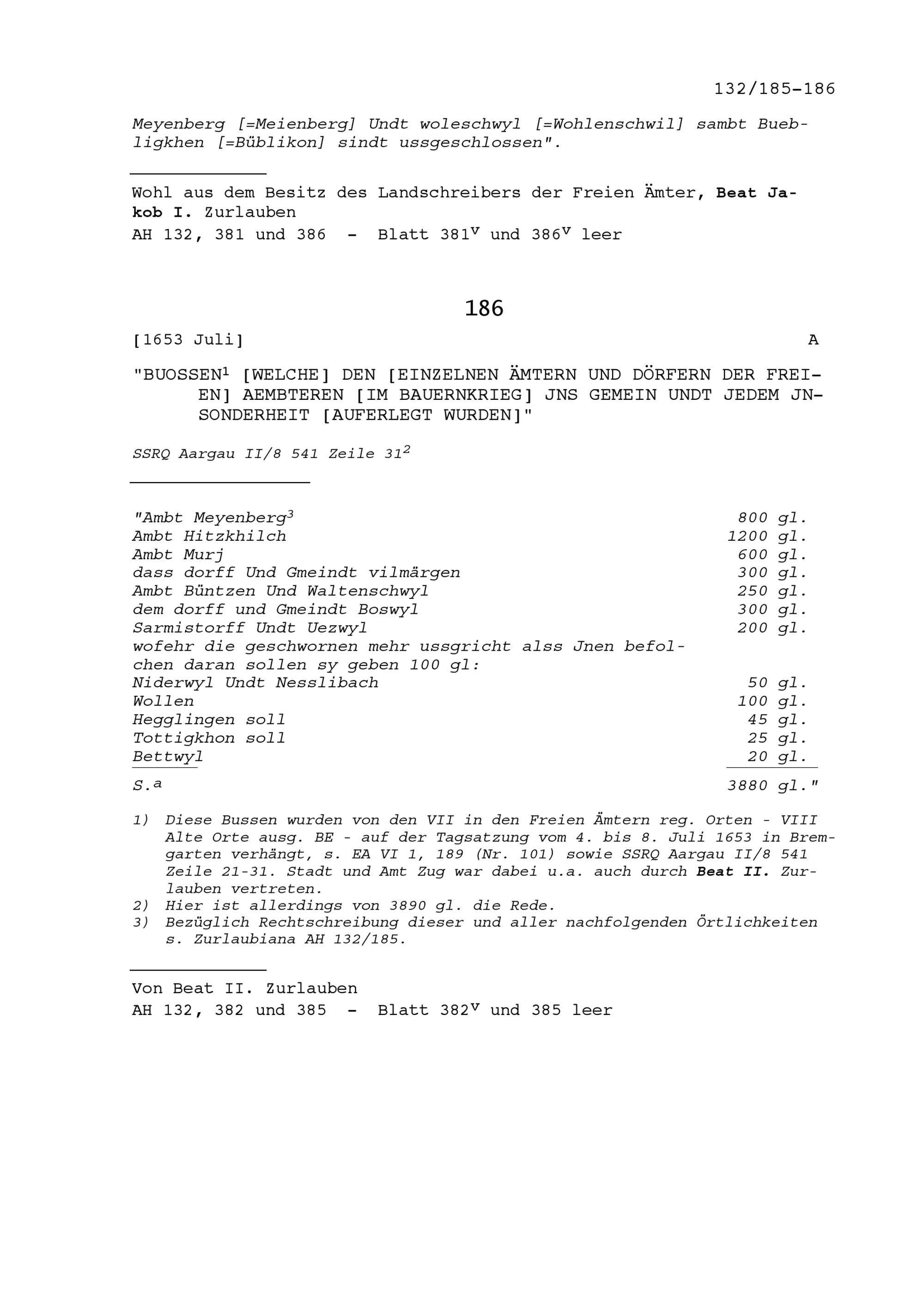 Vorschlag wie die 15'000 Gulden Kontributionen durch die Freien Ämter zu bezahlen sind