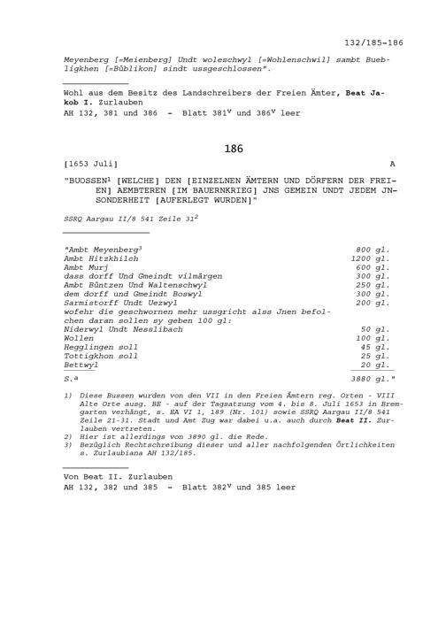 Vorschlag wie die 15'000 Gulden Kontributionen durch die Freien Ämter zu bezahlen...