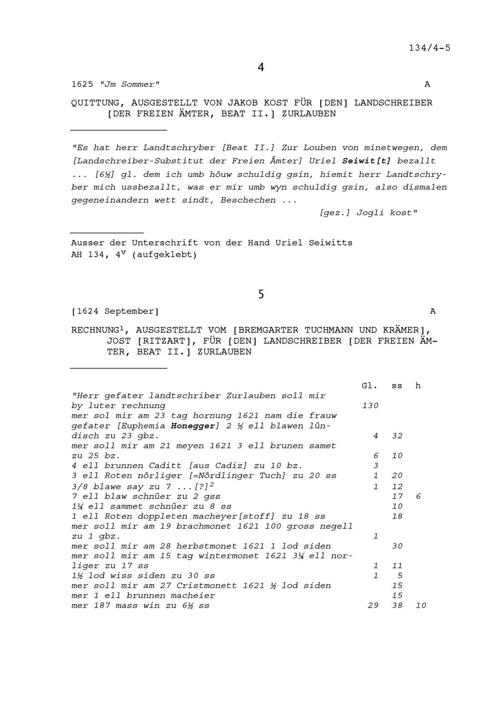 Rechnung für Beat II. Zurlauben, Landschreiber der Freien Ämter, ausgestellt von...