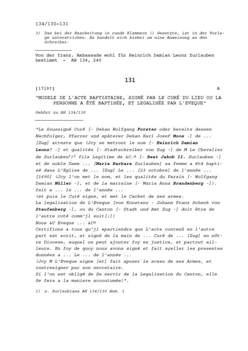 Formularschreiben zur Bestätigung der Religion, des Lebens, des Todes durch Ammann und Rat Zug