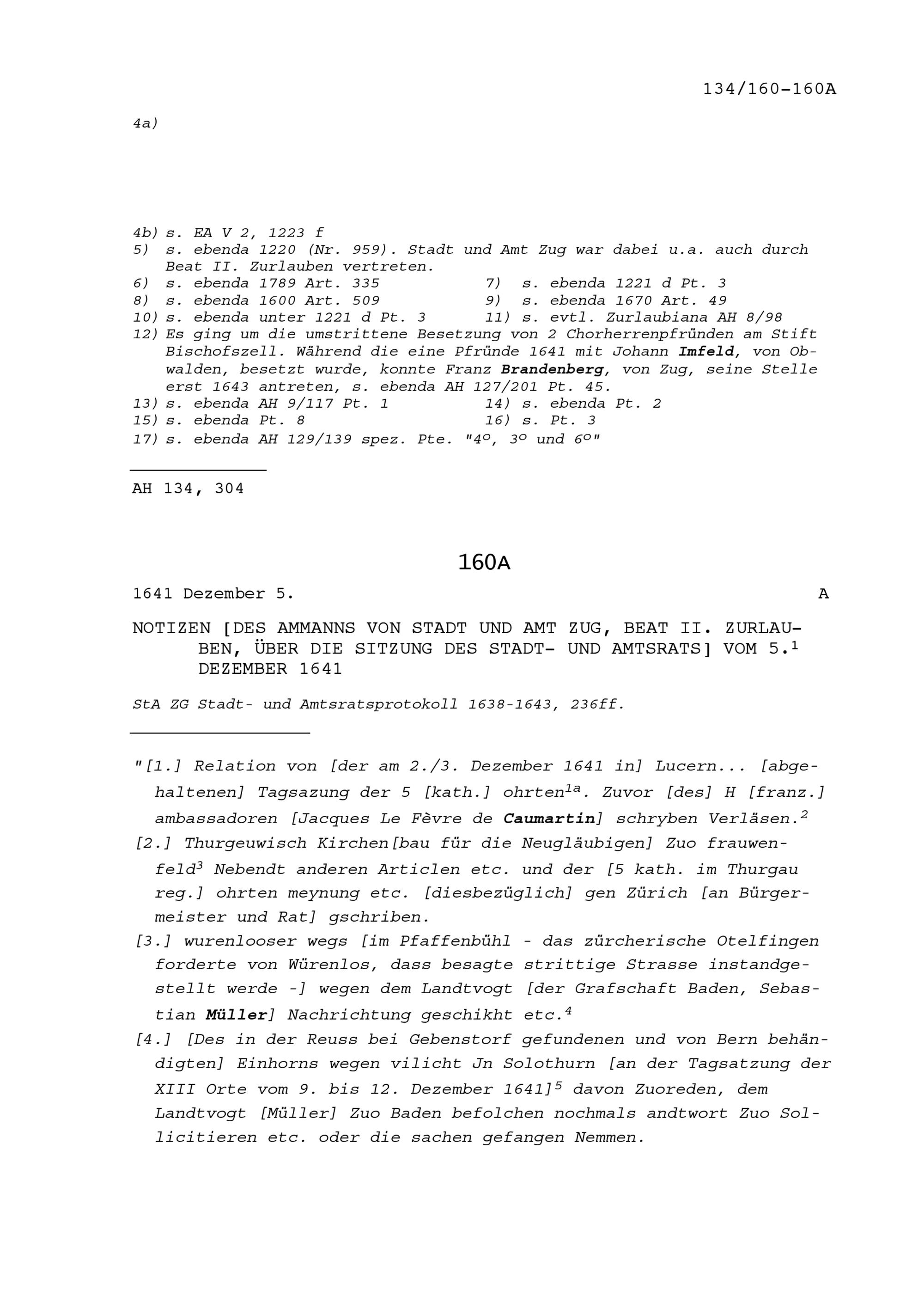 Notiz von Beat II. Zurlauben, Ammann von Stadt und Amt Zug, über die Sitzung des Stadt- und Amtrats vom 29. November 1641