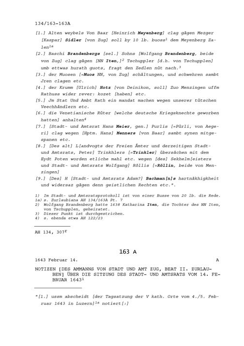 Notiz von Beat II. Zurlauben, Ammann von Stadt und Amt Zug, über die Sitzung des Stadt- und Amtrats vom 26. Januar 1643