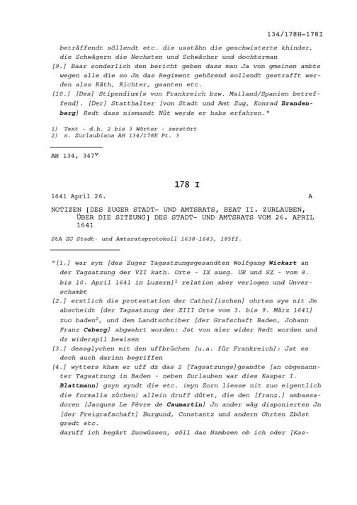 Notiz von Beat II. Zurlauben, Ammann von Stadt und Amt Zug, zum Schwörtag vom 12. Mai 1642