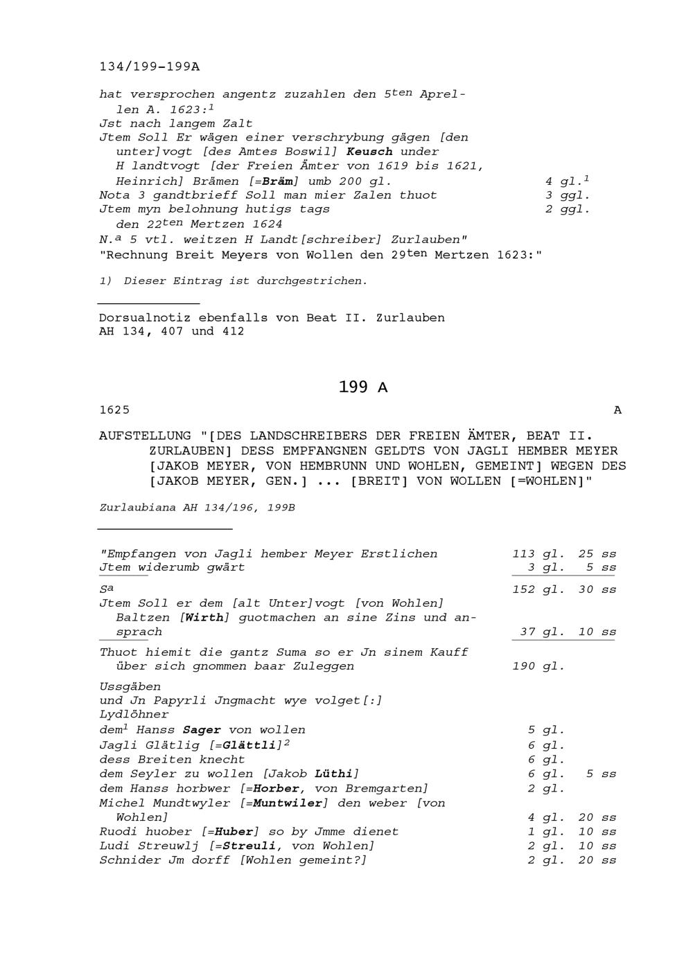 Abrechnung zwischen Beat II. Zurlauben, Landschreiber der Freien Ämter, und Jakob Meyer, genannt Breit, von Wohlen