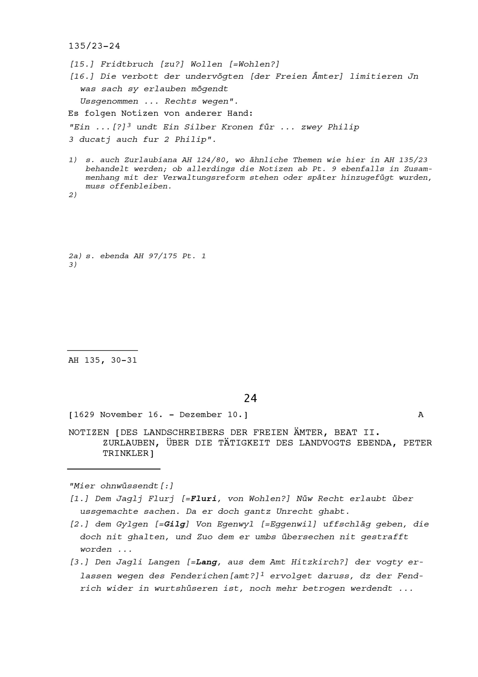 Notiz von Beat II. Zurlauben, Stadt- und Amtrat Zug, zur Verwaltungsreform in den Freien Ämter