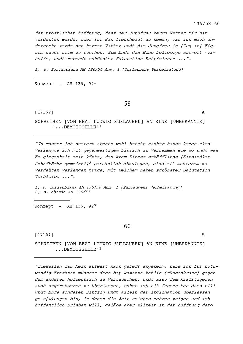 Schreiben von Beat Ludwig Zurlauben an eine Dame