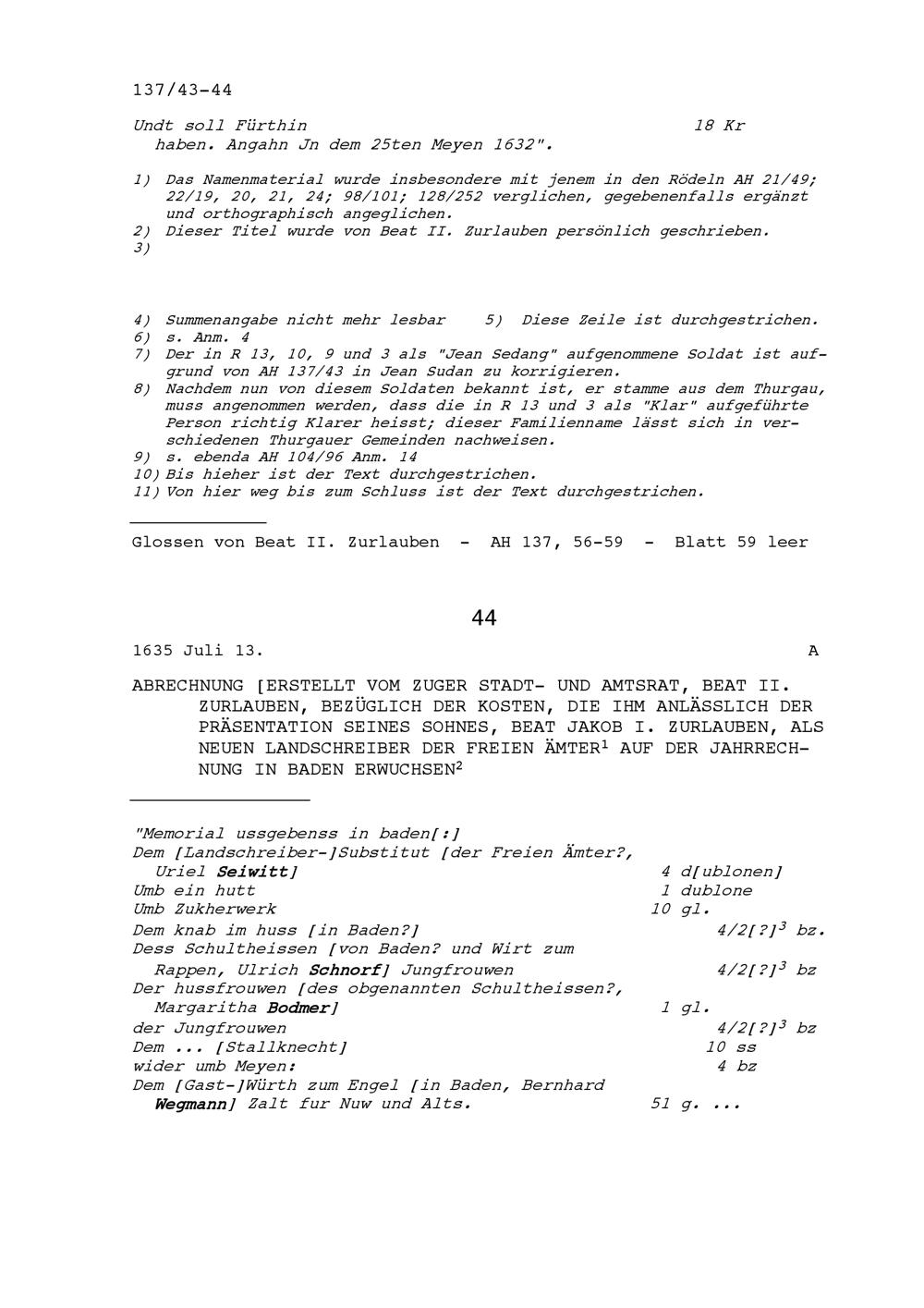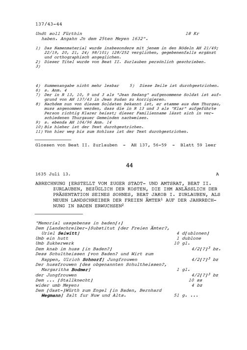 Mannschafts- und Soldrodel jener, die finanzielle Ansprüche an Beat II. Zurlauben, Gardehauptmann in französischen Diensten, haben, bis 25. August 1631