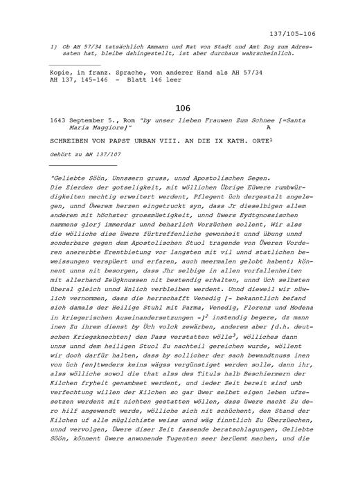 Schreiben von Jules de Gravel, Marquis de Marly, Ambassador von Frankreich, an Bürgermeister und Rat Zürich
