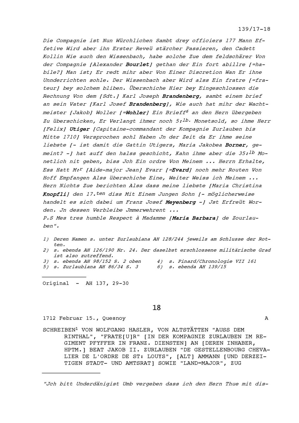 Schreiben von Franz Leonz Meyenberg, Kommandant der Kompanie Zurlauben im Regiment...