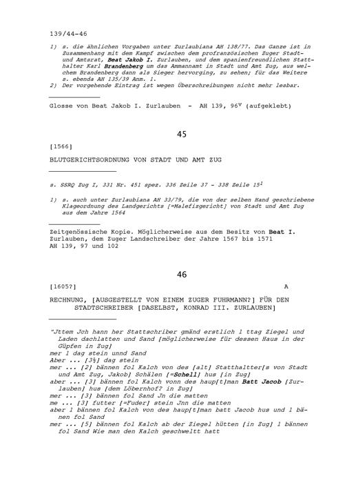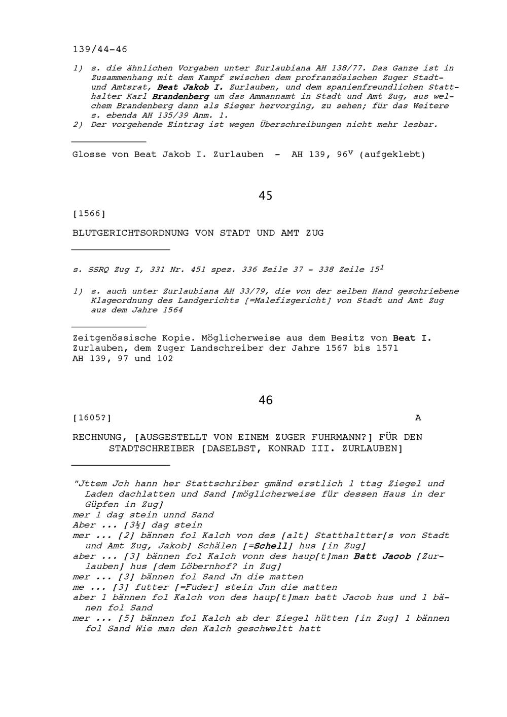 Dorfgenossen von Menzingen, deren französische Pensionen zurückbehalten beziehungsweise aufgebessert wurden, aufgelistet von Beat Kaspar Zurlauben