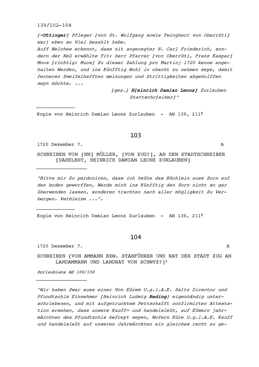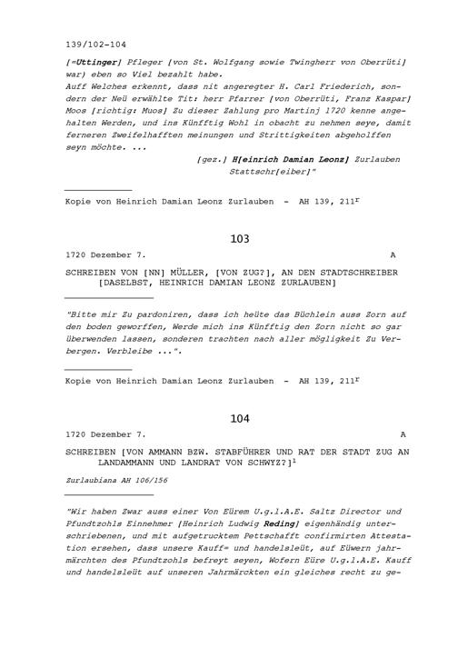 Ratsbeschluss des Ammanns (Stabführers) und Rats der Stadt Zug, betreffend Franz Kaspar Muos, Pfarrer von Oberrüti