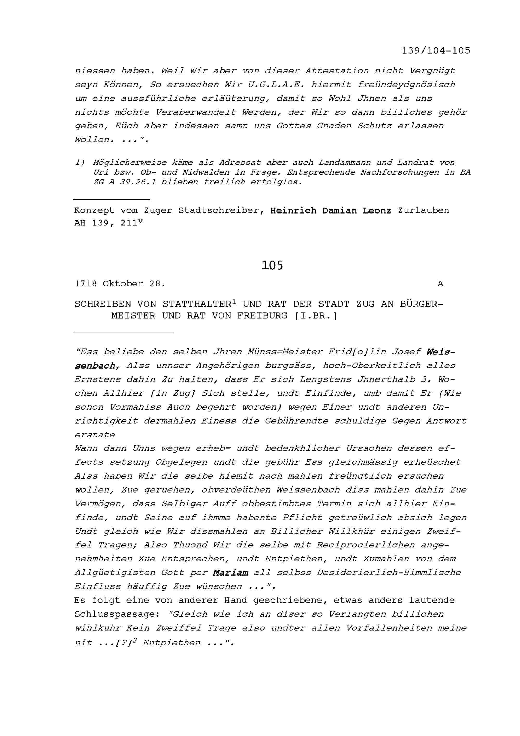 Schreiben des Ammanns (Stabführers) und Rats der Stadt Zug an Landammann und Landrat...