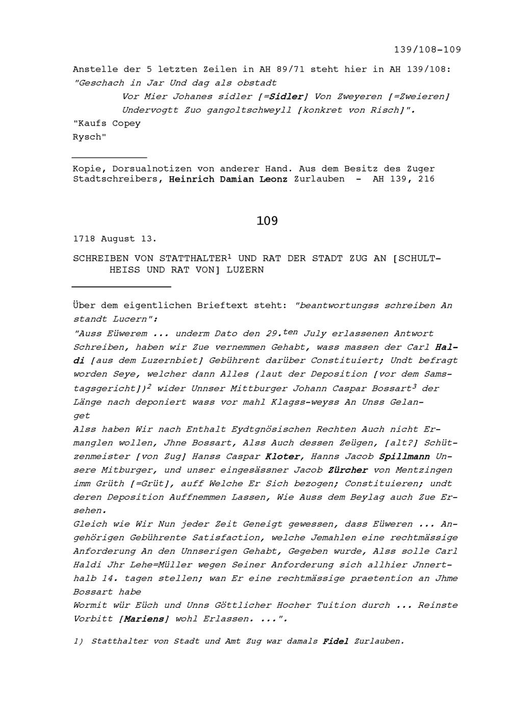 Kaufvertrag zwischen Kaspar Kost, von Sonderi, als Verkäufer einerseits und Heinrich Hegglin, Meister, von Holzhäusern in Gangolfswil, als Käufer anderseits