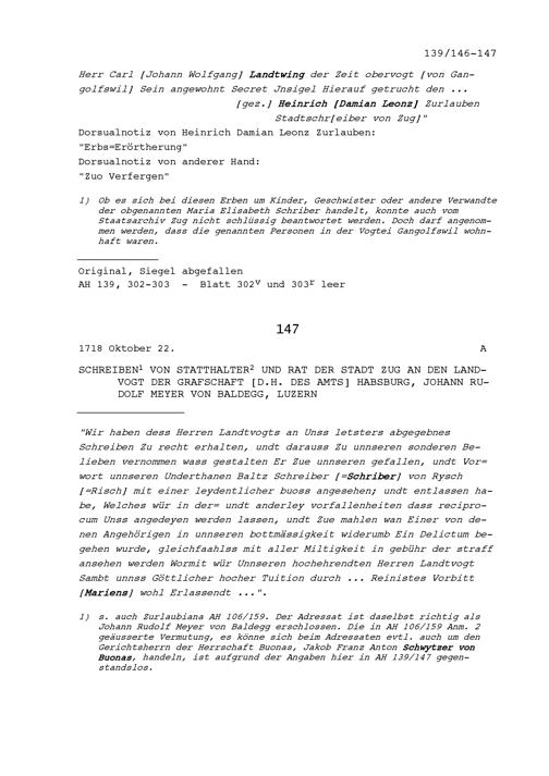 Erbbescheinigung bezüglich der Hinterlassenschaft von Maria Elisabeth Schriber, aus der Vogtei Gangolfswil
