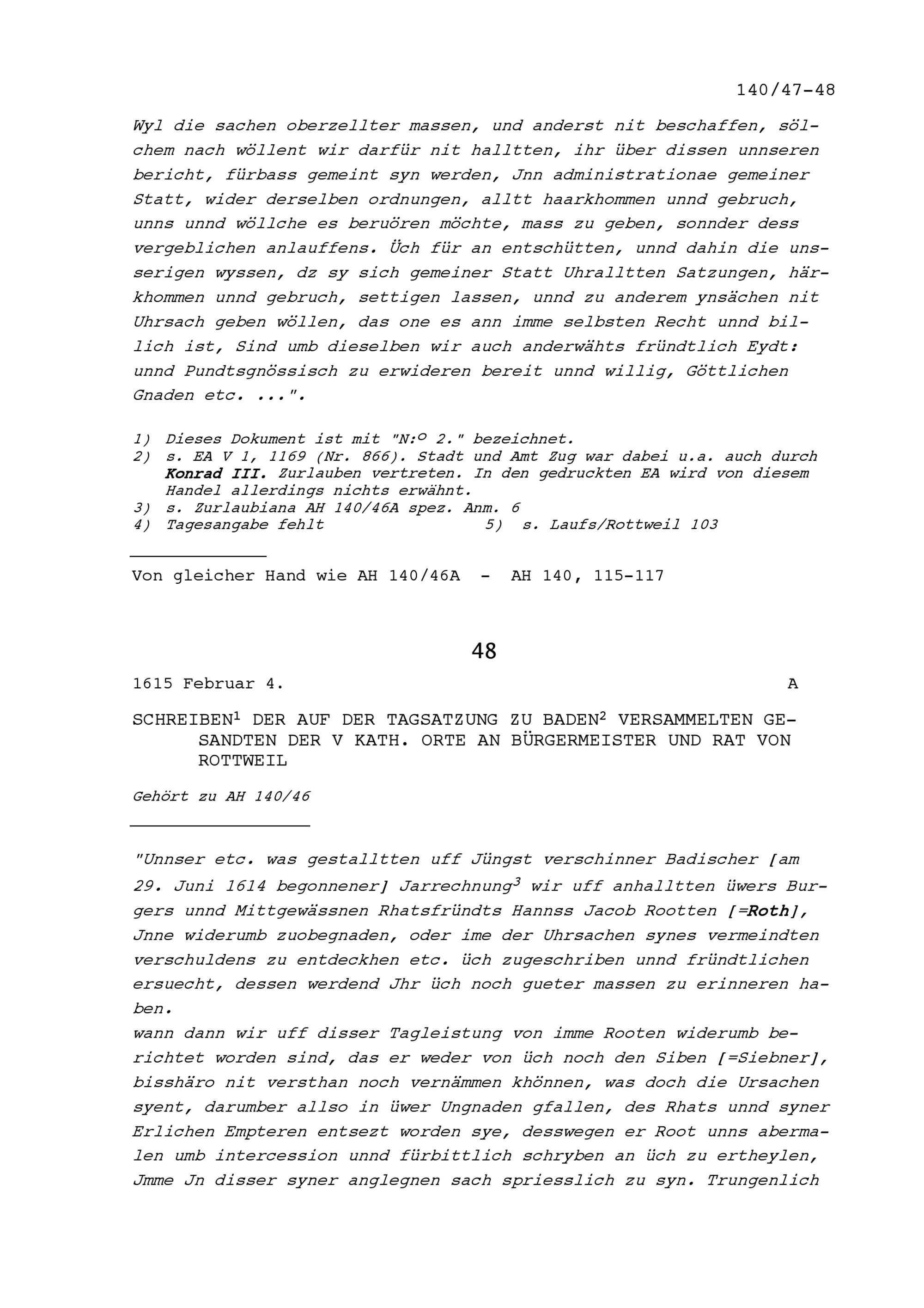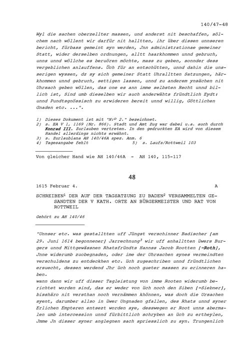 Schreiben des Bürgermeisters und Rats von Rottweil an die Fünf Katholischen Orte