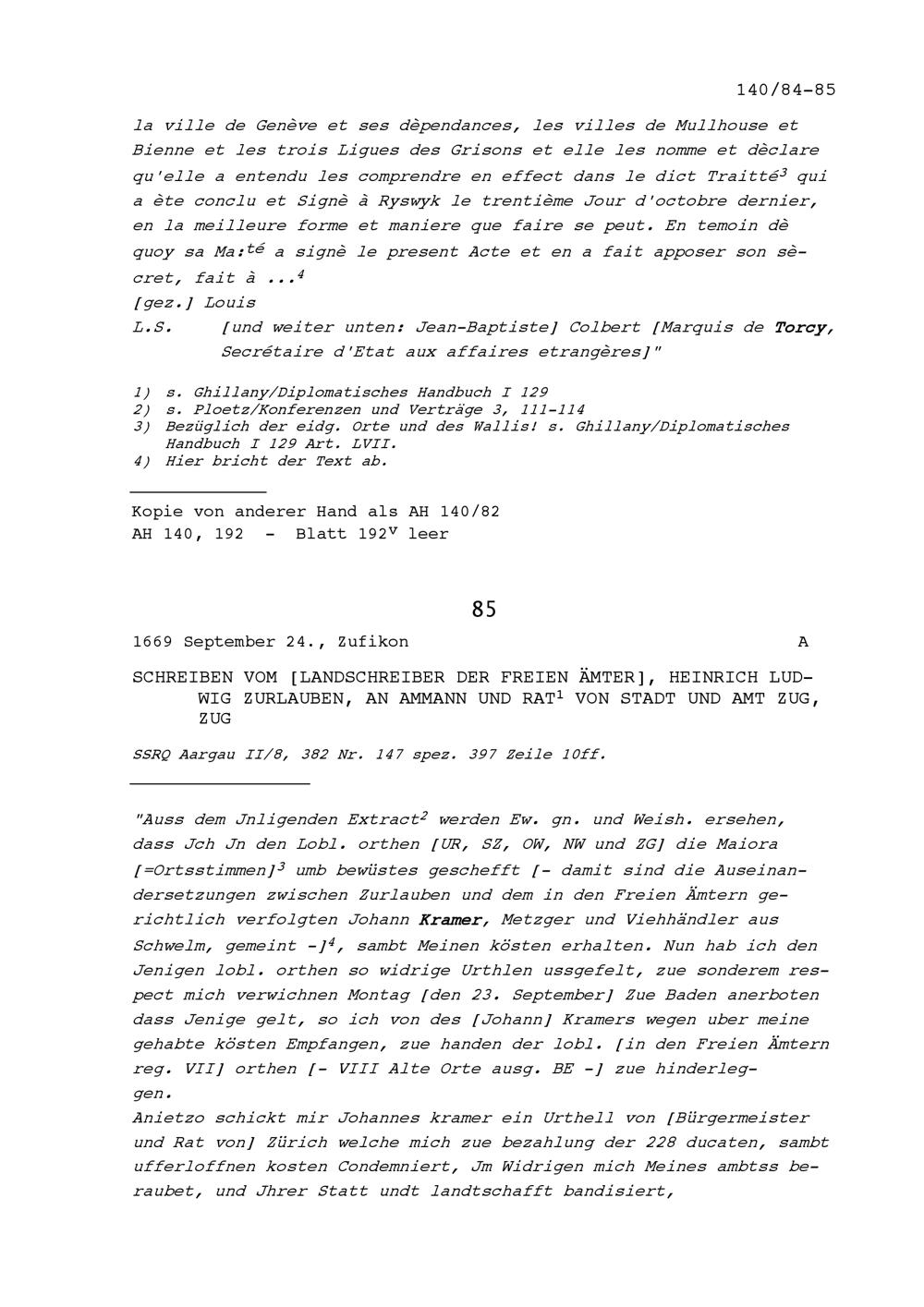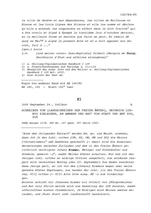 Artikel über den Einbezug der Gesandten der Eidgenössischen Orte in den Frieden von Rijswijk, wie es Ludwig XIV., König von Frankreich, wünschte