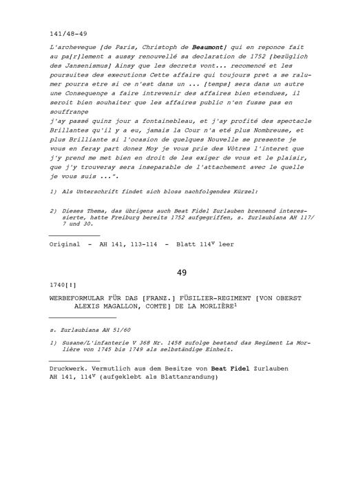 Schreiben von Unbekannt an Beat Fidel Zurlauben, Gardehauptmann und Brigadier