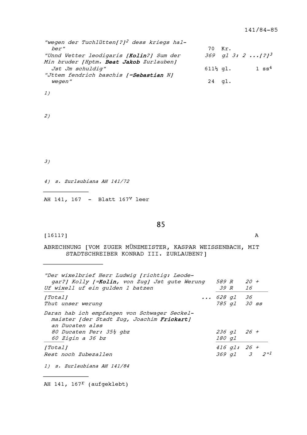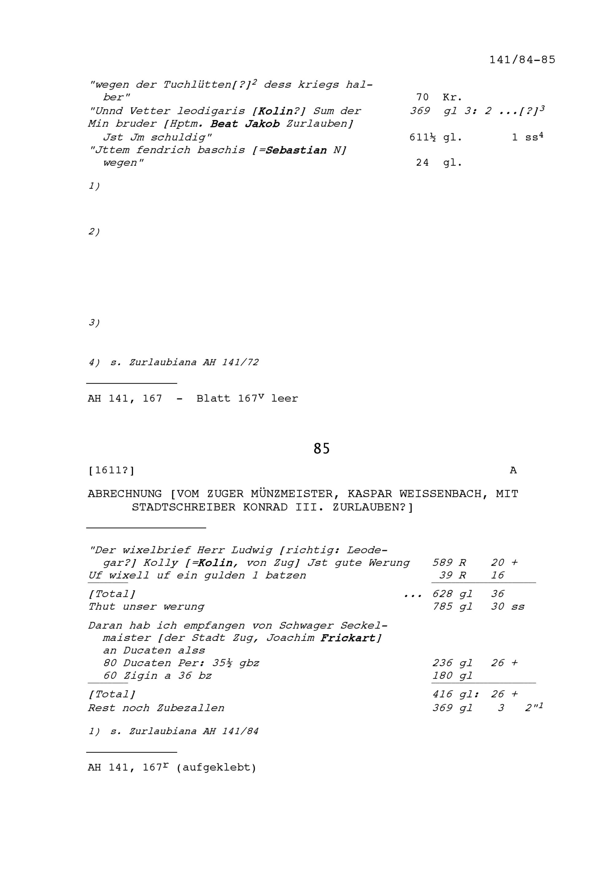 Abrechnung von Konrad III. Zurlauben, Zuger Stadtschreiber, über seine Einnahmen und Ausgaben