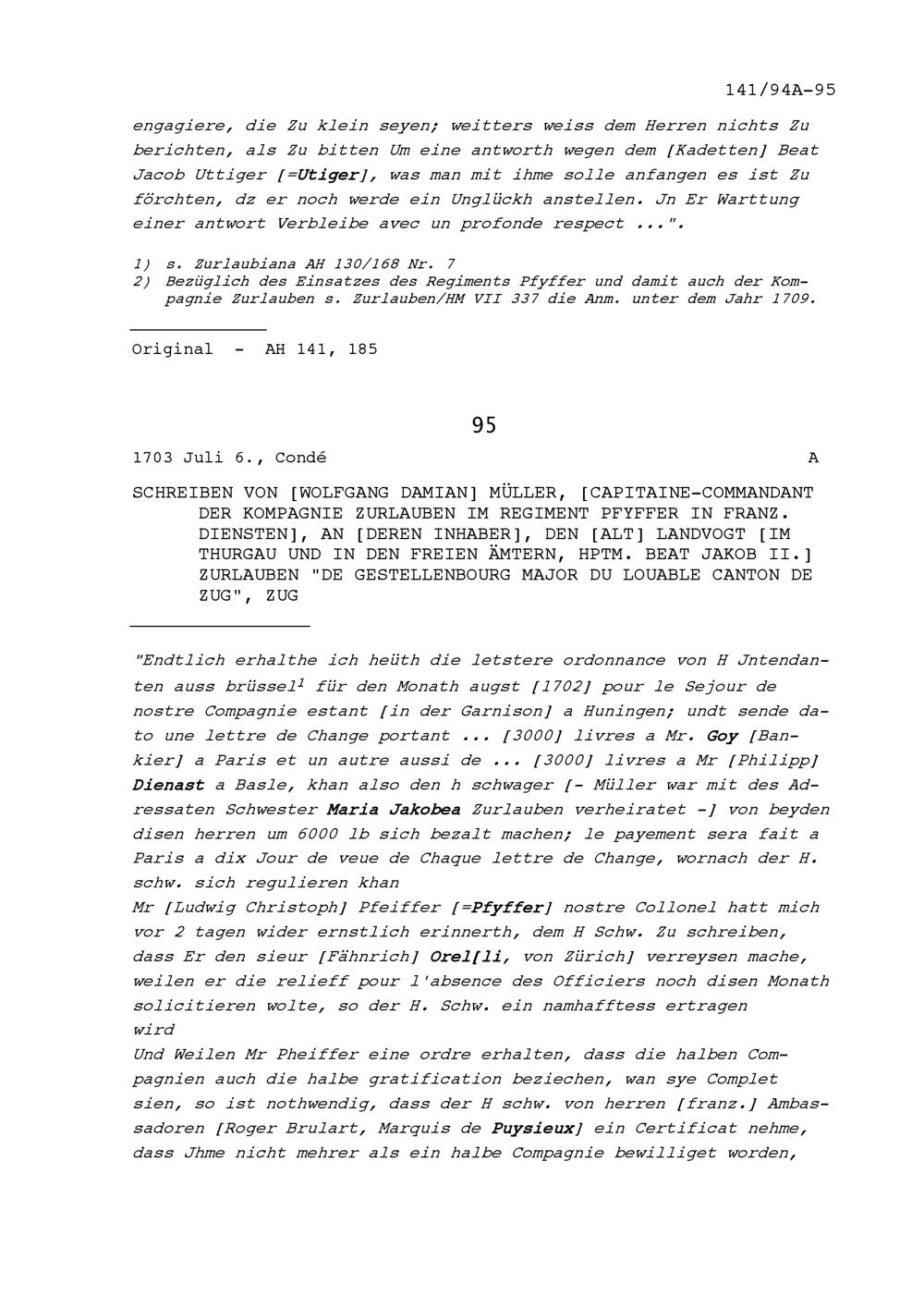 Schreiben von Beat Jakob Meyer, Leutnant der Kompanie Zurlauben im Regiment Pfyffer...