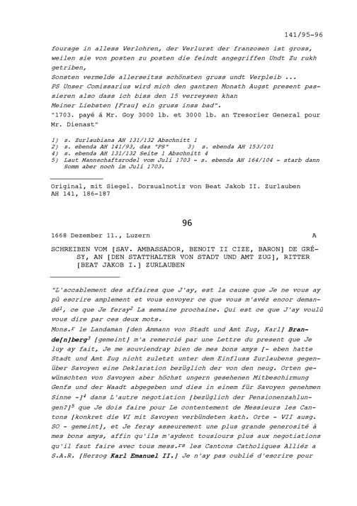 Schreiben von Wolfgang Damian Müller, Kommandant der Kompanie Zurlauben im Regiment...