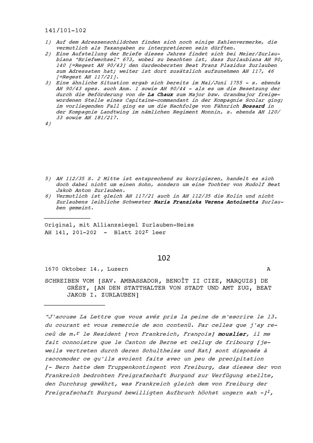 Schreiben von Rudolf Beat Jakob Anton Zurlauben, Kommandant der Kompanie von Beat...