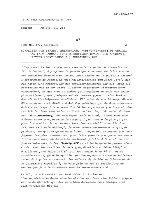 Bittgesuch von Ägid Franz Andermatt zuhanden von Louis-Auguste de Bourbon, Duc du Maine, Kommandant des Regiments der Schweizer und Bündner Garden, zwecks Überlassung der vakanten Kompanie Zurlauben im Regiment Jost Brendlé