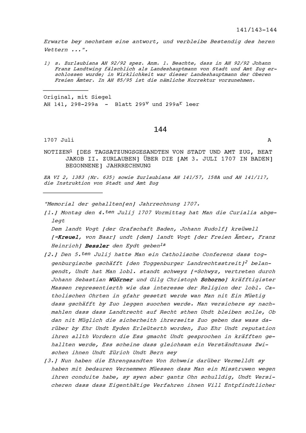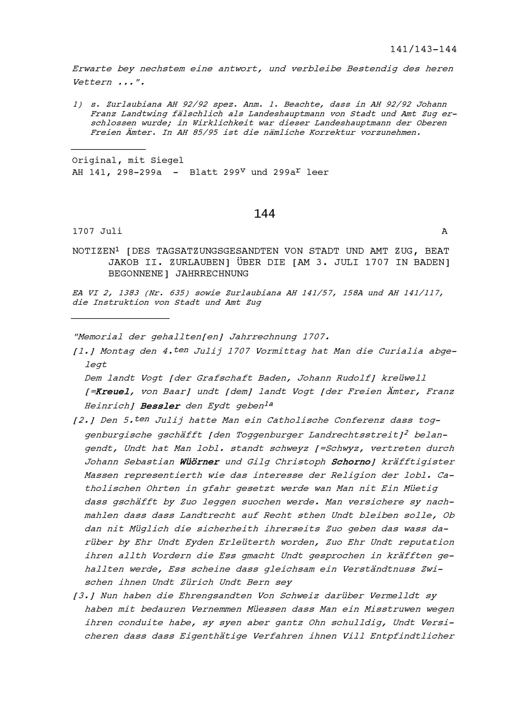 Schreiben von Gerold II. Zurlauben, Abt von Rheinau, an Beat Jakob Anton Zurlauben Priester, Zug