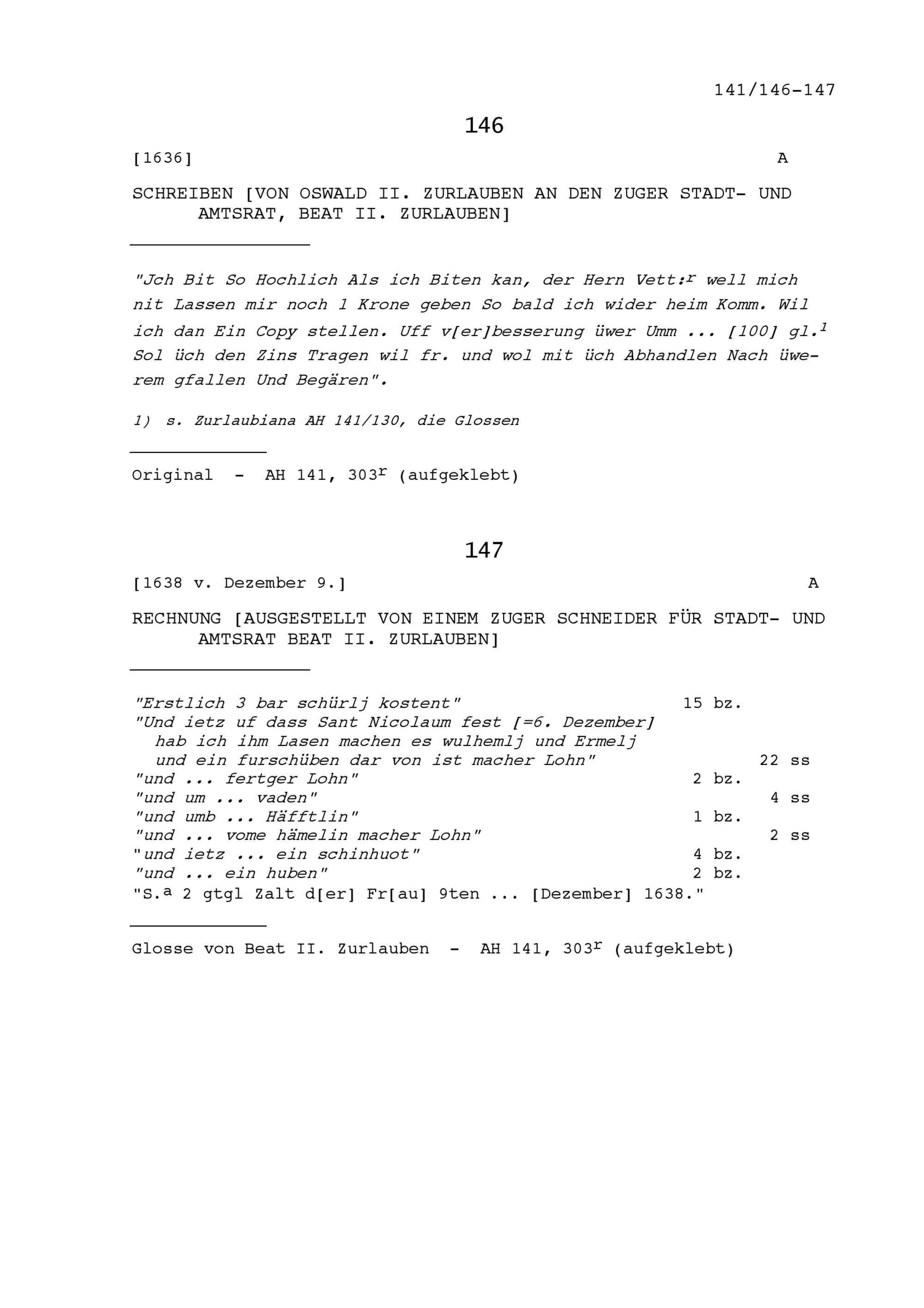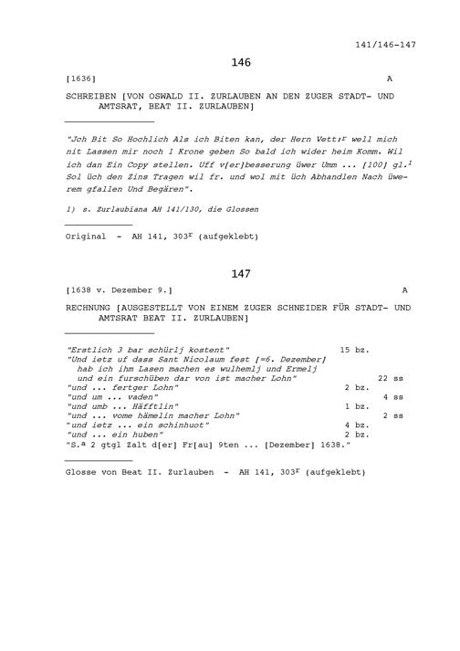 Rechnung für Beat II. Zurlauben, Stadt- und Amtrat, ausgestellt von einem Zuger Schneider