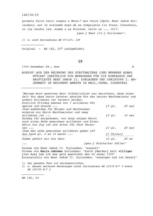 Quittung für NN Hardy, "Commis à l'extraordinaire de la guerre, ausgestellt von Beat II. Zurlauben, Leutnant in der Kompanie von Beat Jakob Zurlauben, Hauptmann,