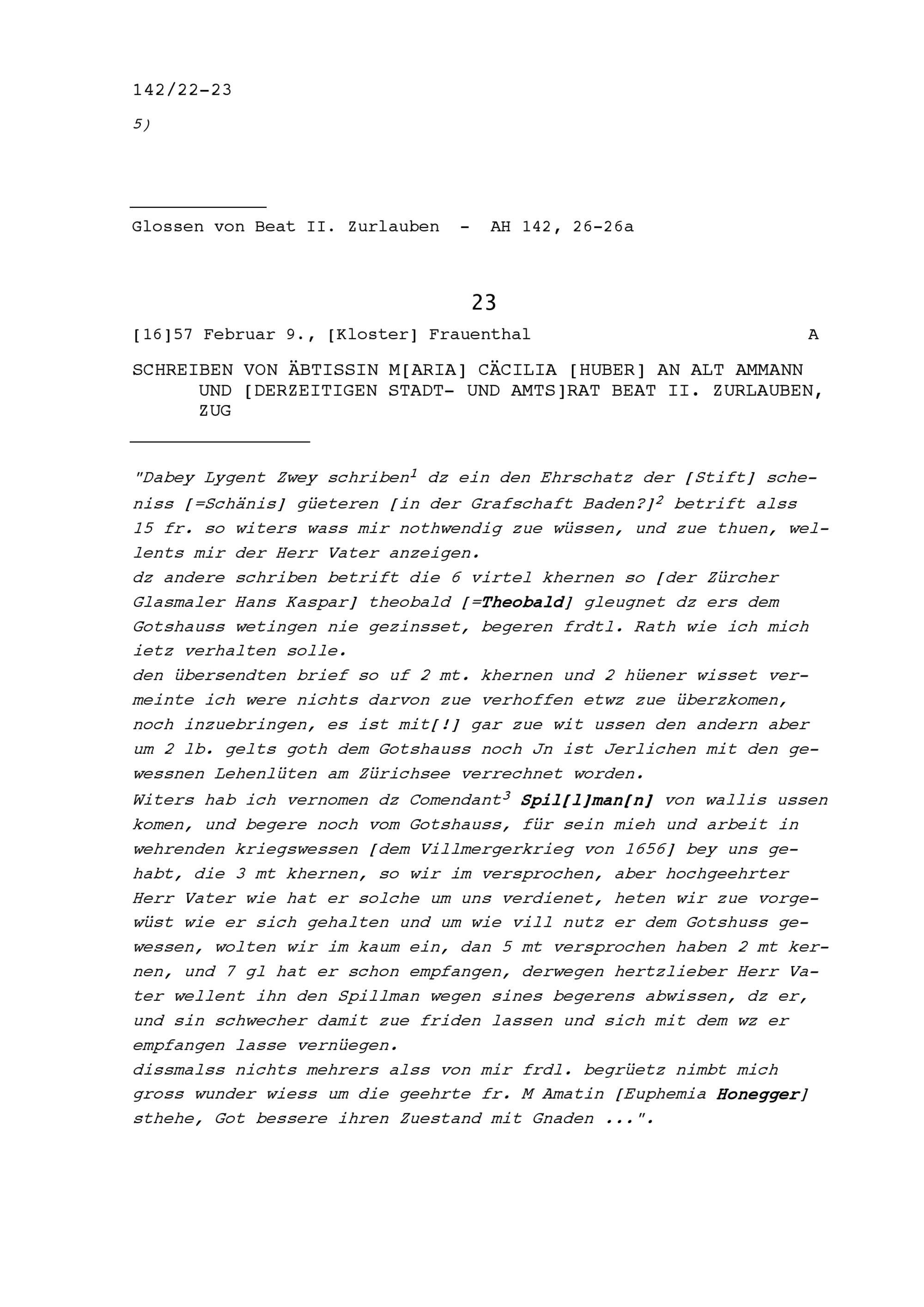 Rechnung für Beat II. Zurlauben, Altammann von Stadt und Amt Zug und Tagsatzungsgesandter, ausgestellt Bernhard Wegmann, von Gastwirt zum Engel in Baden