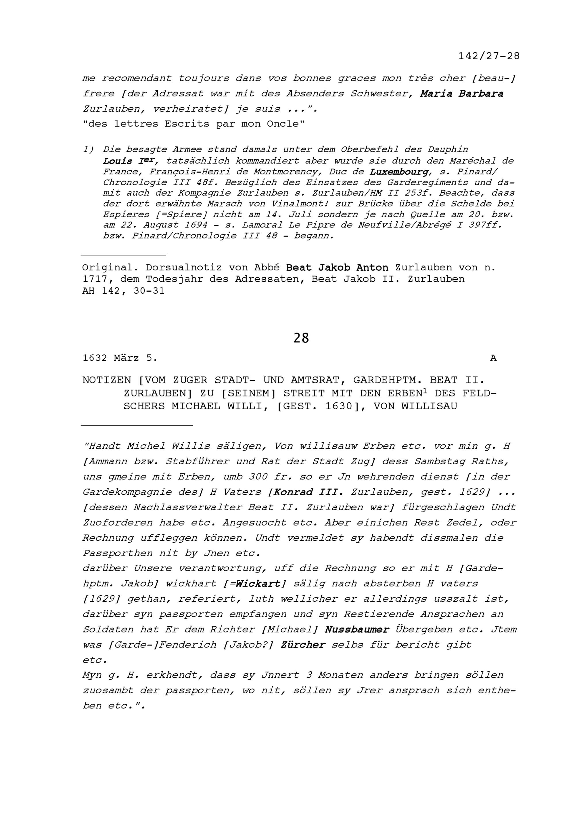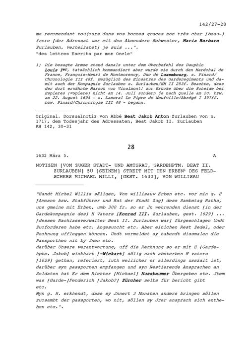 Schreiben von Beat Heinrich Josef Zurlauben, Gardehauptmann, an Beat Jakob II. Zurlauben, Hauptmann