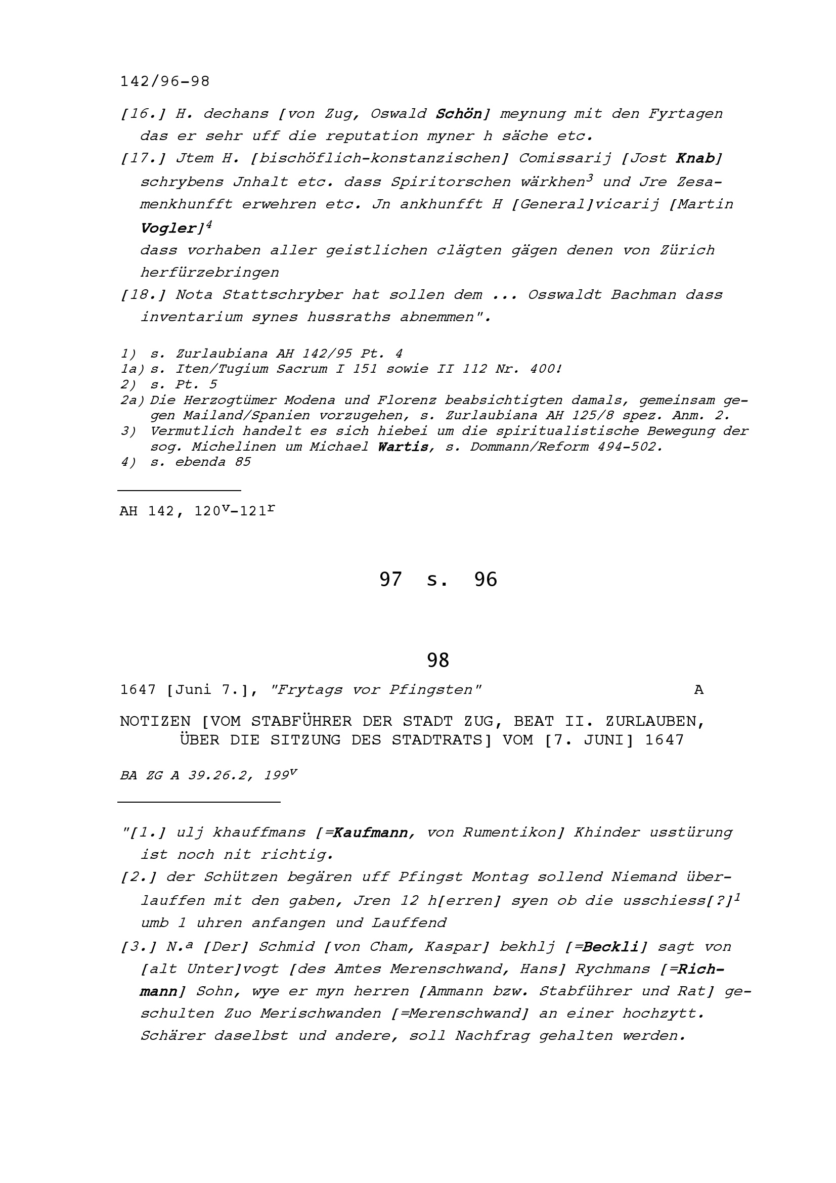 Notiz von Beat II. Zurlauben, Stabführer der Stadt Zug, über die Sitzung des Stadtrats vom 1. Juni 1647