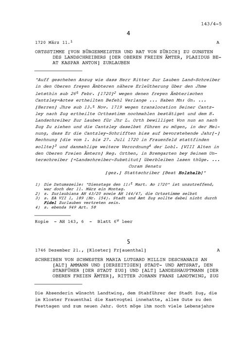 Schreiben von Maria Lutgard Millin Deschanais, Klosterfrau, an Johann Franz Landtwing, Altammann und Stadt- und Amtrat, den Stabführer der Stadt Zug und Altlandeshauptmann der Oberen Freien Ämter, Zug