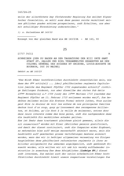 Schreiben der Gesandten der Dreizehn Orte samt Stadt Sankt Gallen und Biel in Baden an Ludwig XV., König von Frankreich
