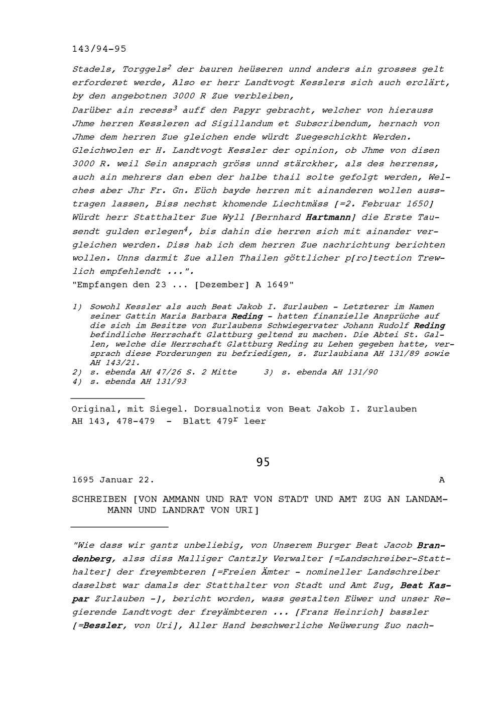 Schreiben von Johann Baptist Harder, Kanzler an Beat Jakob I. Zurlauben, Landschreiber...