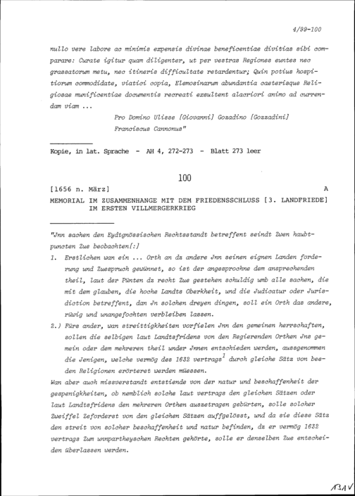 Schreiben von Innozenz XII., Papst, an Schultheissen, Landammänner und Räte der Acht...