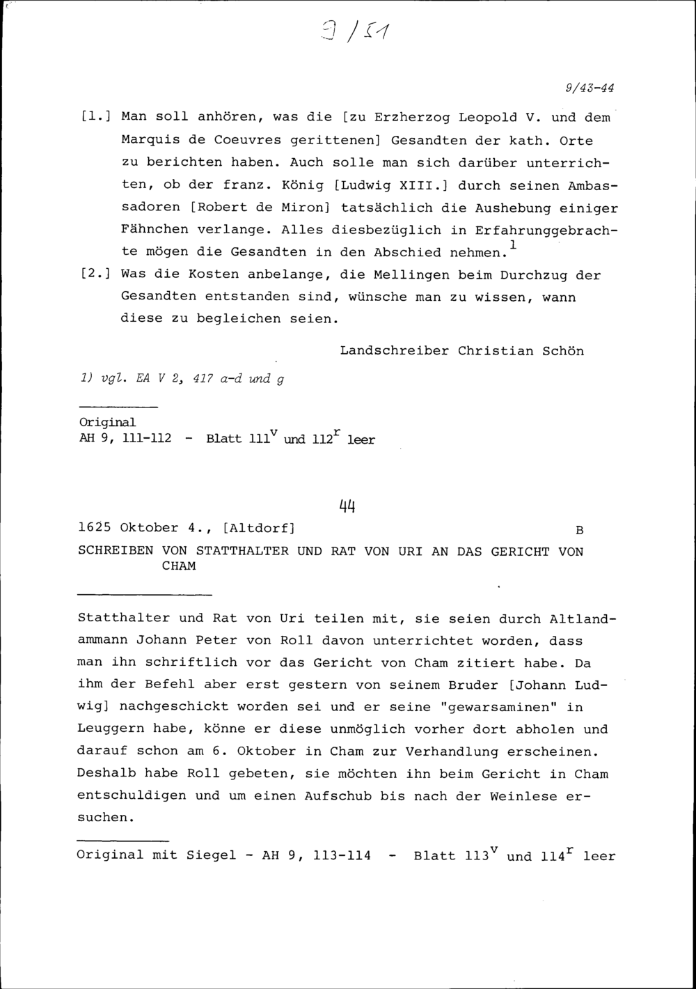 Instruktion von Stadt und Amt Zug auf die Konferenz der Sieben Katholischen Orte in Luzern vom 18. Dezember 1624