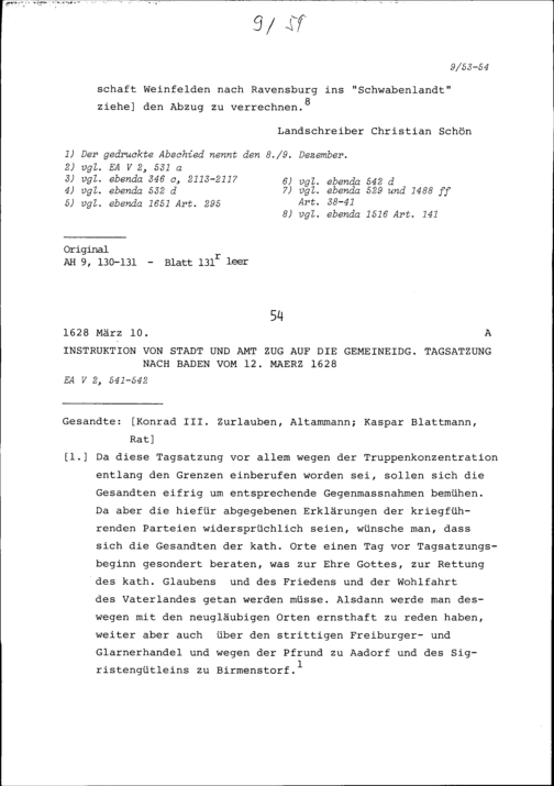 Instruktion von Stadt und Amt Zug auf die Konferenz der Fünf Katholischen Orte in Luzern vom 7. Dezember 1627