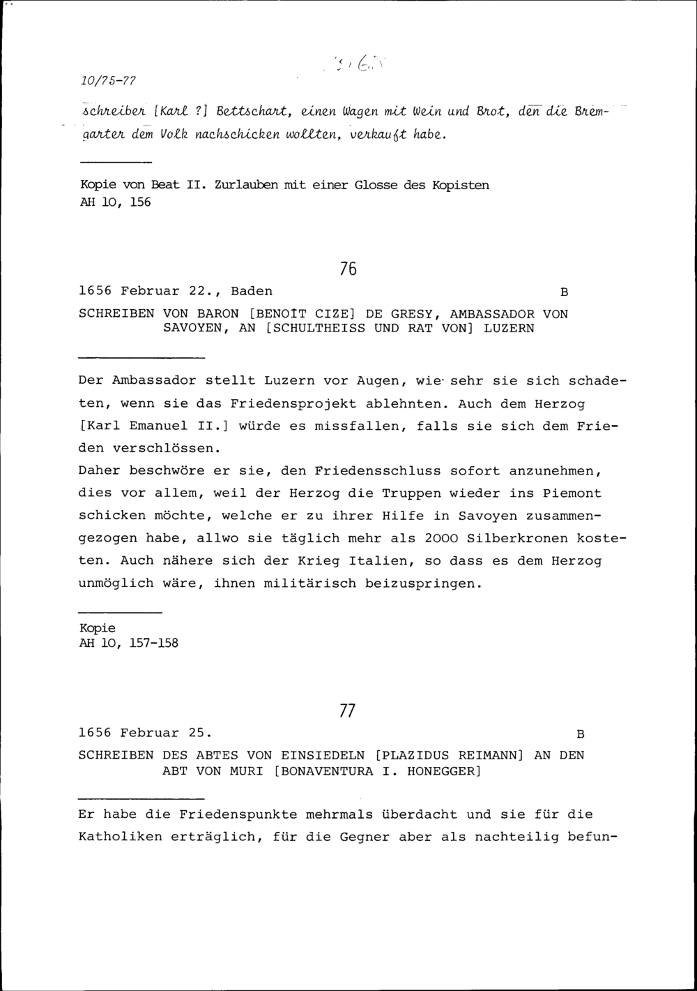 Schreiben des Rats und Kriegsrats der Vier Orte in Zug an die Kommandanten in Br...