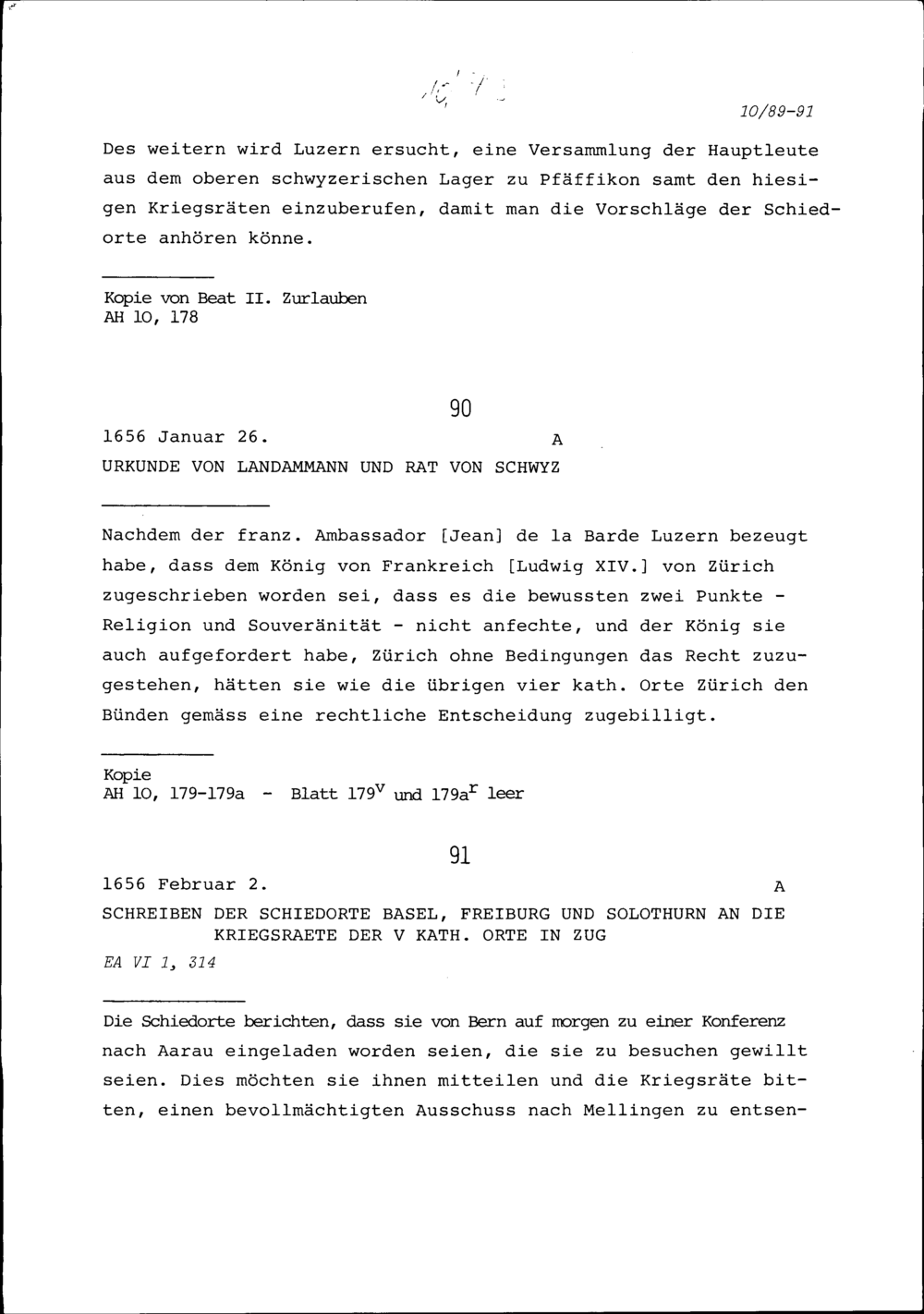Schreiben der Schiedsorte Basel, Freiburg und Solothurn an die Kriegsräte der Fünf Katholischen Orte in Zug