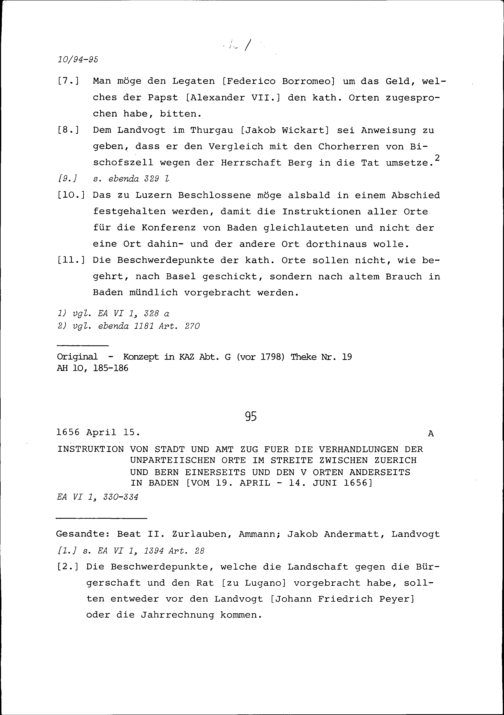 Instruktion von Stadt und Amt Zug auf die Konferenz der Fünf Katholischen Orte in Luzern vom 10. April 1656