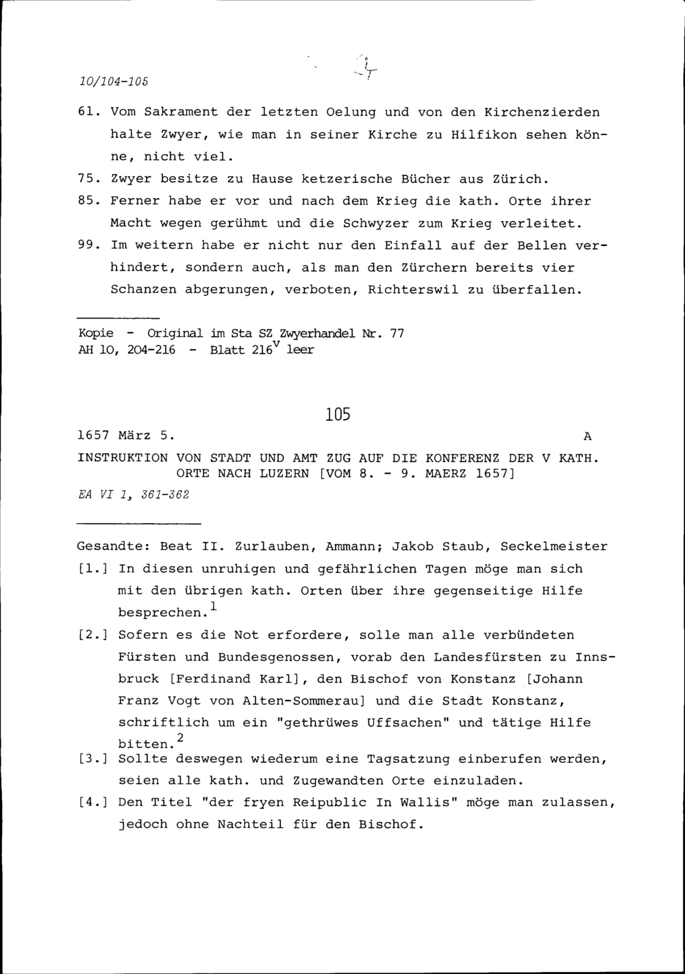 Hundertzwölf Kundschaftsaussagen von Schwyzern gegen Sebastian Peregrin Zwyer von Evibach