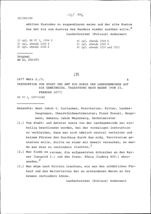 Instruktion von Stadt und Amt Zug auf die Konferenz der Fünf Katholischen Orte in Luzern vom 14. bis 15. Dezember 1676