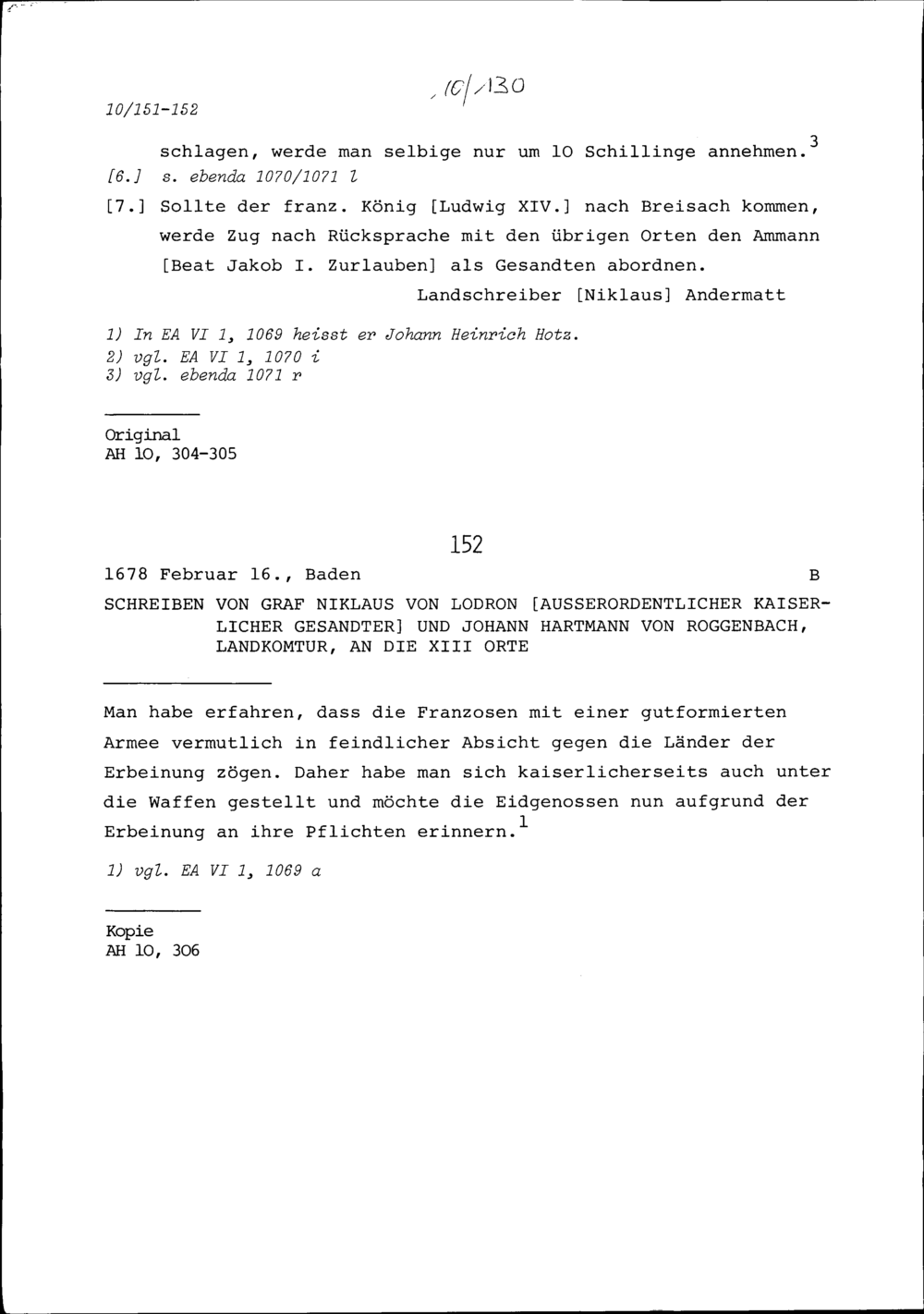 Instruktion von Stadt und Amt Zug auf die Tagsatzung in Baden begonnen am 7. Februar 1678