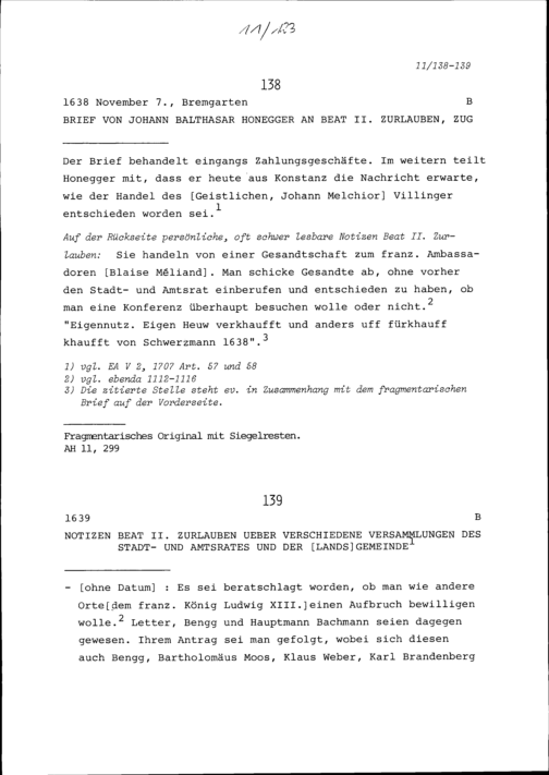 Notiz von Beat II. Zurlauben über verschiedene Versammlungen des Stadt- und Amtrats...