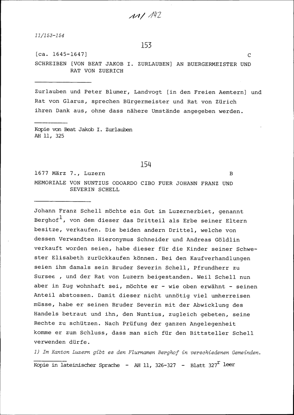Bericht von Odoardo Cibo, Nuntius, für Johann Franz Schell und für Severin Schell