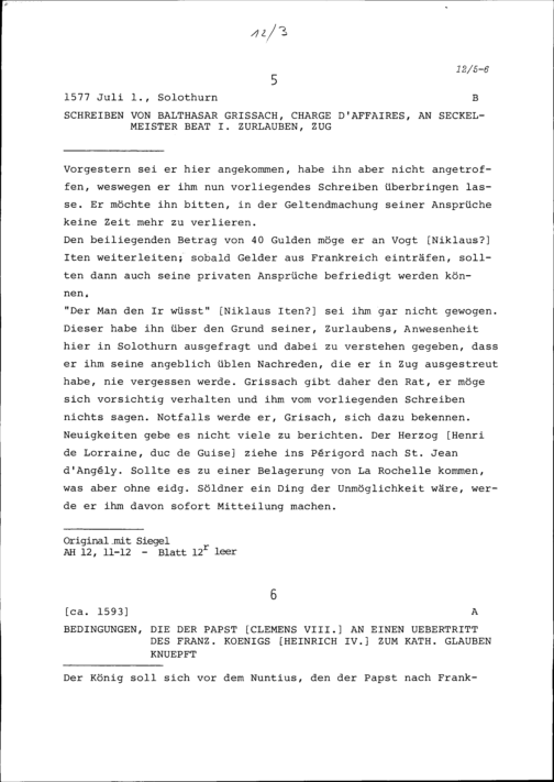 Bedingungen, die Clemens VIII., Papst, an einen Übertritt von Heinrich IV., König von Frankreich, zum katholischen Glauben knüpft