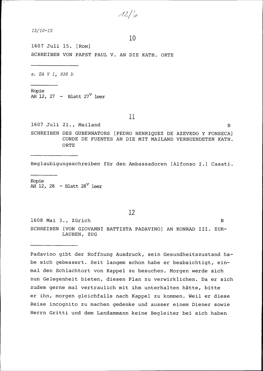 Schreiben von Giovanni Battista Padavino an Konrad III. Zurlauben, Zug
