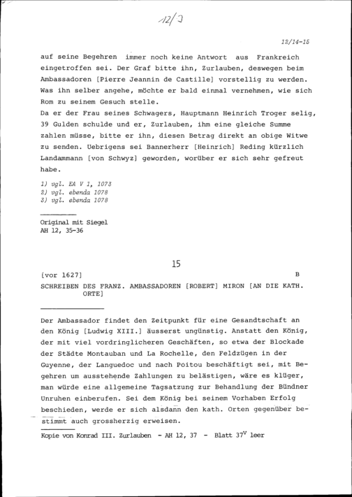 Schreiben von Georg Angeloch an Konrad III. Zurlauben, Zug