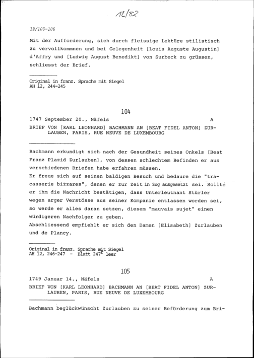 Schreiben von Karl Leonhard Bachmann an Beat Fidel Anton Zurlauben, Paris